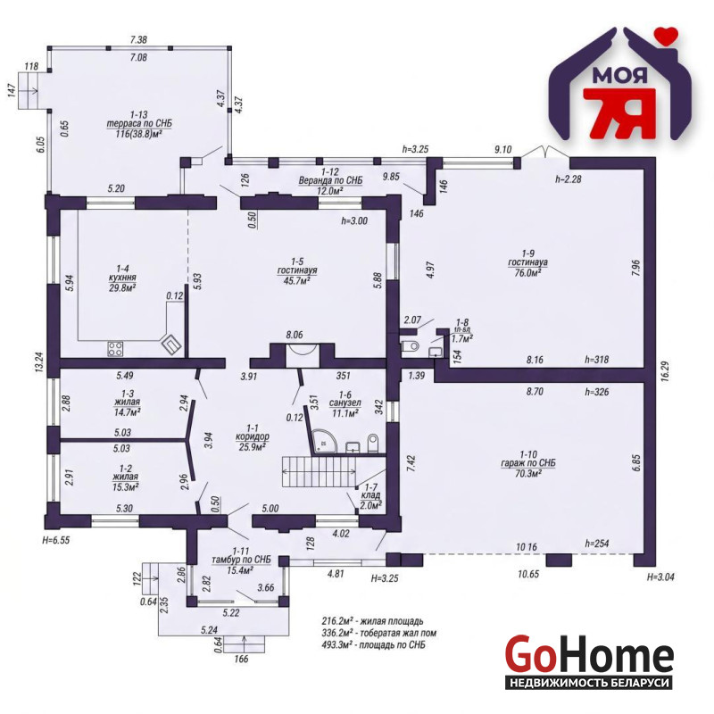 -Главный дом – просторен и функционален. На первом этаже расположена светлая кухня-гостиная – центр семейной жизни. Две жилые комнаты. Просторный гараж вмещает с лёгкостью три автомобиля.
