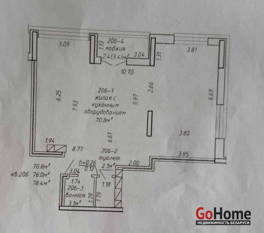 Площадь: 78 кв.м — много света и пространства, частичный ремонт.