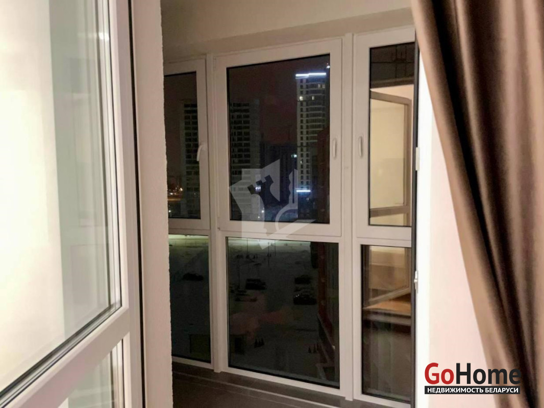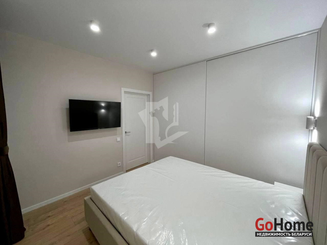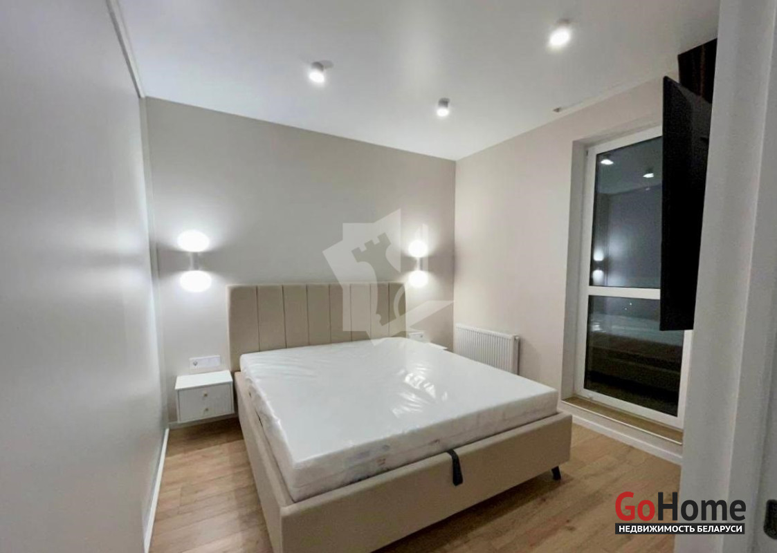 -В спальне большой шкаф-купе с множеством секций для хранения вещей и одежды, также в шкафу установлена стиральная машина. Выдвижная кровать с местом для хранения пастельного. Телевизор 43 дюйма. Выключатели установлены так, чтобы свет можно было включить при входе в комнату, а выключить уже лежа в кровати. В спальне выход на балкон.