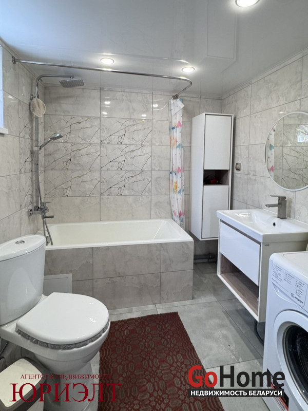 На цокольном этаже расположен санузел, жилая комната и прихожая с повременной отделкой, есть теплый пол.