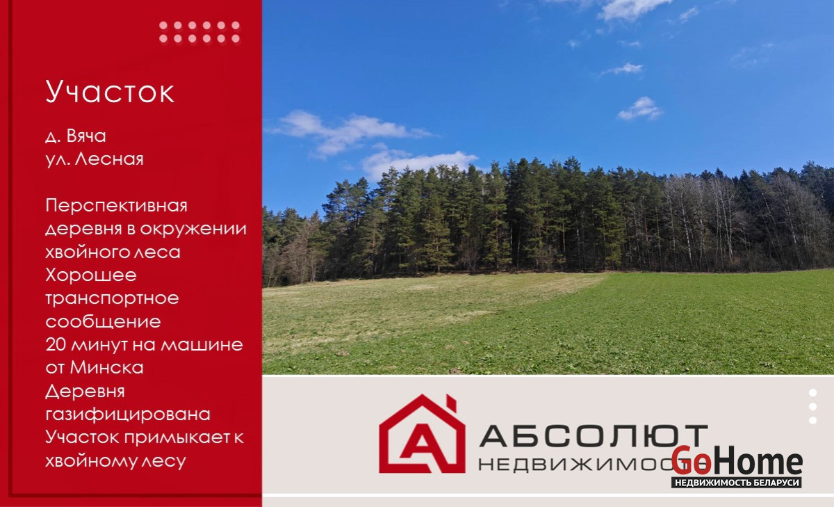 Продается просторный земельный участок 20,07 соток 14 км от МКАД в современной деревне Вяча, ул.Лесная,12 (Мядельское направление, Логойский район, Беларучский с/с).