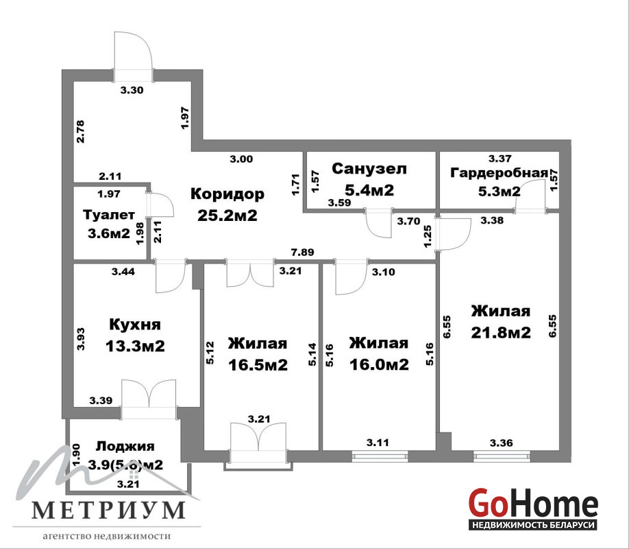 - Три раздельные комнаты 16.5 / 16.0 / 21.8 м.кв.