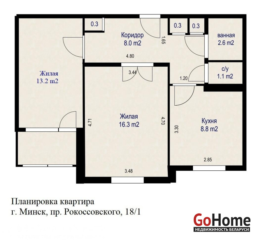 2-комнатная квартира в Минске по пр. Рокоссовского, 18/1. Рациональная планировка, площадь 52,6 м. кв. Чешка!