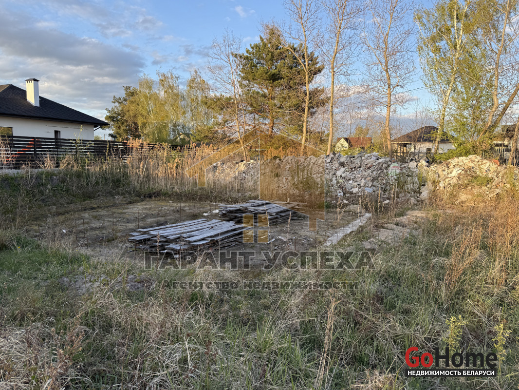 Дачный участок формы «трапеция» 5,46 сотки в черте Бреста за ж/д переездом в сторону д. Прилуки. Угловой, соседи только с 1 стороны. Привезен кирпич для бутования и подсыпки, доска, выбрана площадка под фундамент дома 10*11 м, частично начата заливка.