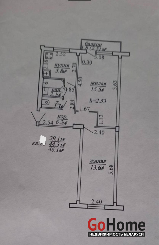 Общая площадь: 46 м²