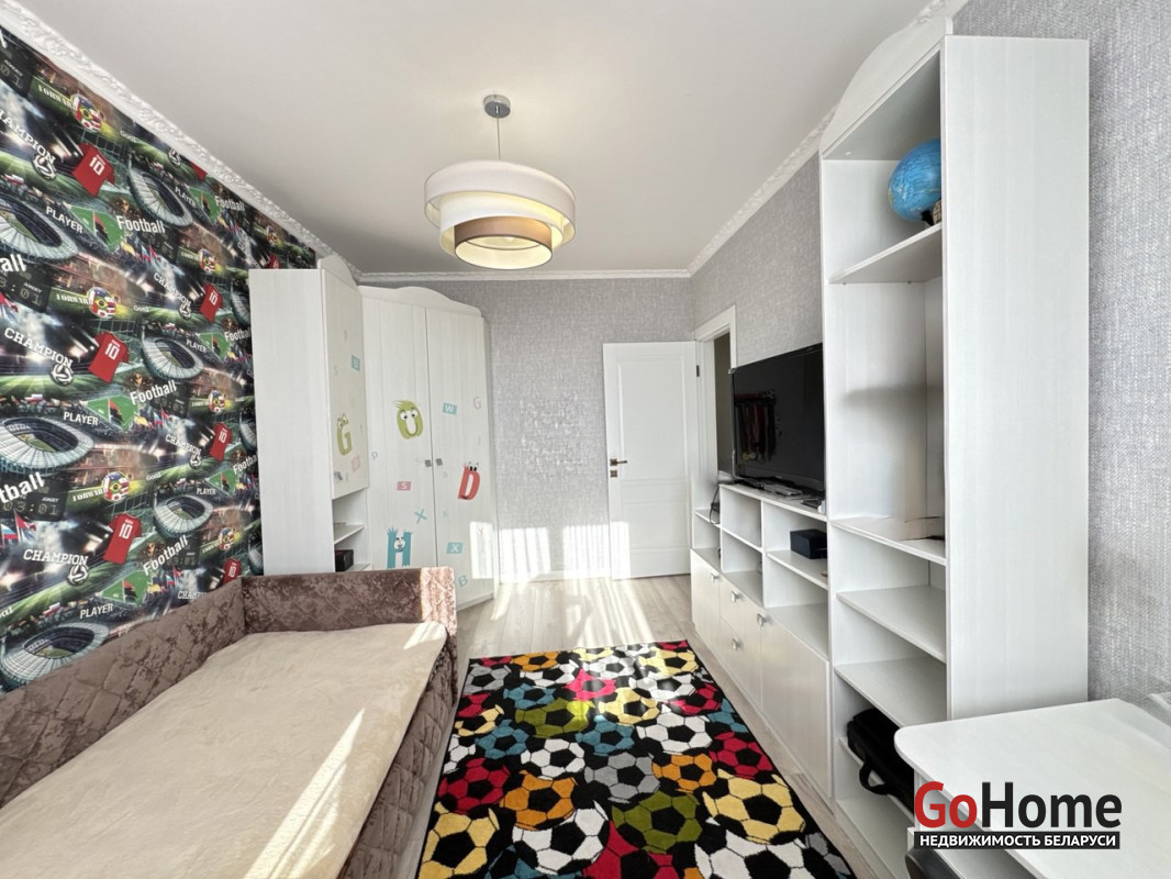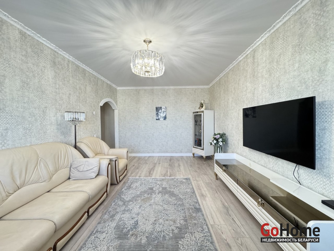 Квартира полностью готова к комфортному проживанию: выполнен качественный ремонт с вниманием к деталям. Общая площадь составляет 77,2 м², жилая — 45 м². Просторная кухня площадью 11,7 м² оснащена гарнитуром из высококачественных материалов и современной техникой. Санузел и ванная комната облицованы импортной плиткой, установлена надёжная сантехника.