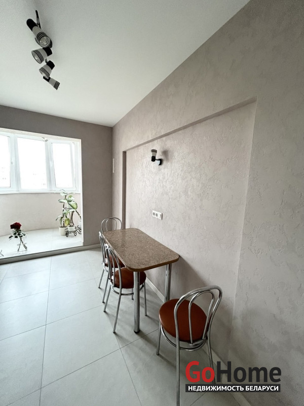 В квартире две лоджии, одна - с панорамным остеклением. Лоджии остеклены рамами ПВХ, на стены нанесена декоративная штукатурка, потолки окрашены, полы с подогревом, уложена плитка.