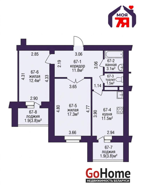 -Квартира общей площадью 57,6 м2, по СНБ 61,4, жилая 29,7 м2 расположена на 5 этаже 12‑этажного дома, находящегося в хорошо развитом районе.