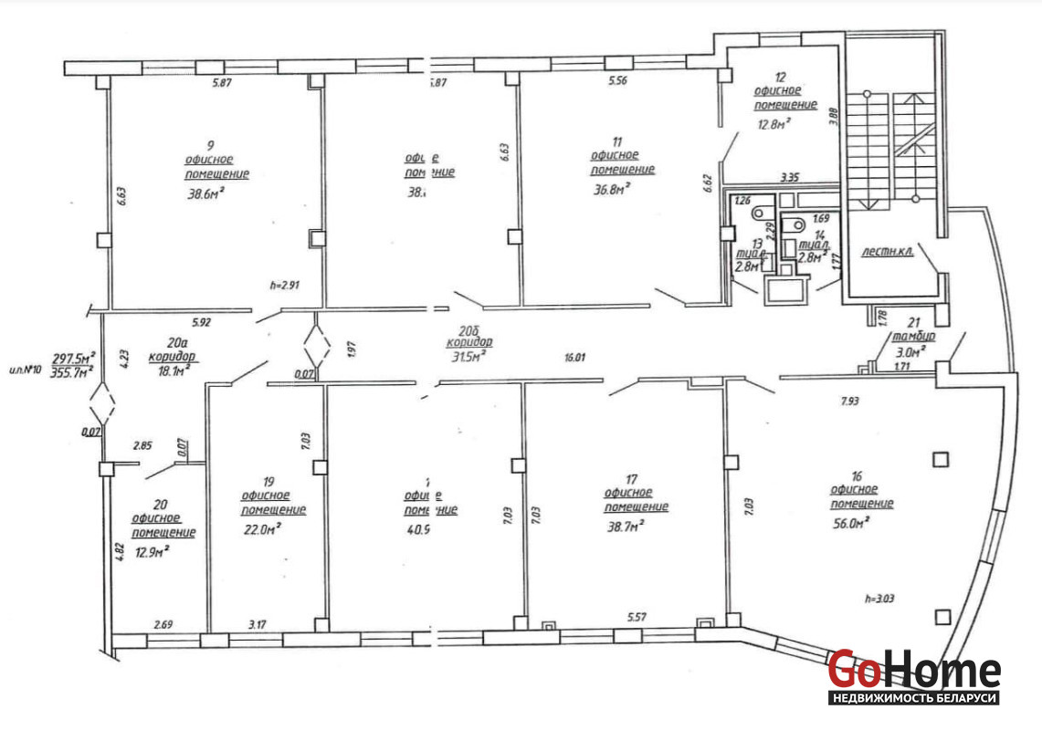 Офисный блок без мебели на 7 кабинетов 355,7м2 по адресу Либаво-Роменская 23