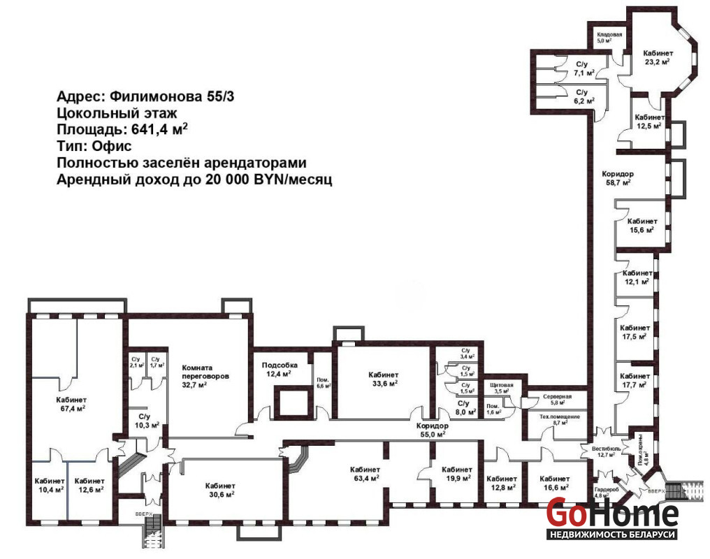 Продаётся готовый арендный бизнес - офисное помещение площадью 640 м2 в Минске (ул. Филимонова, 55/3).
