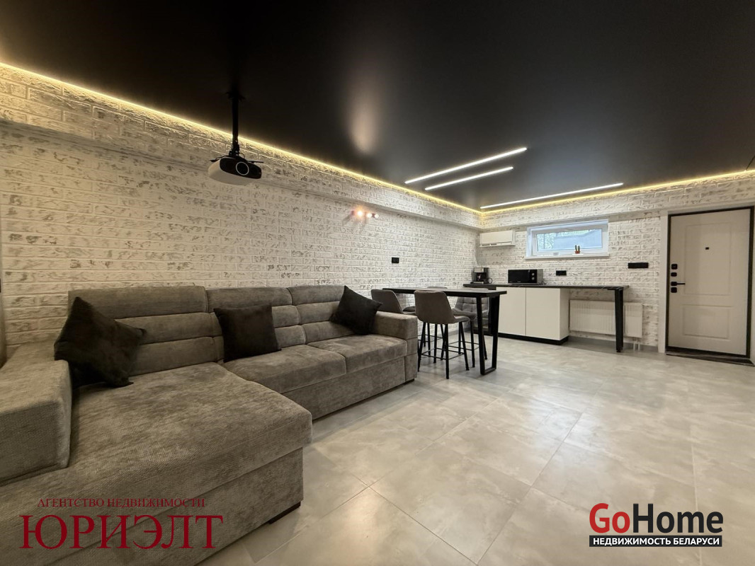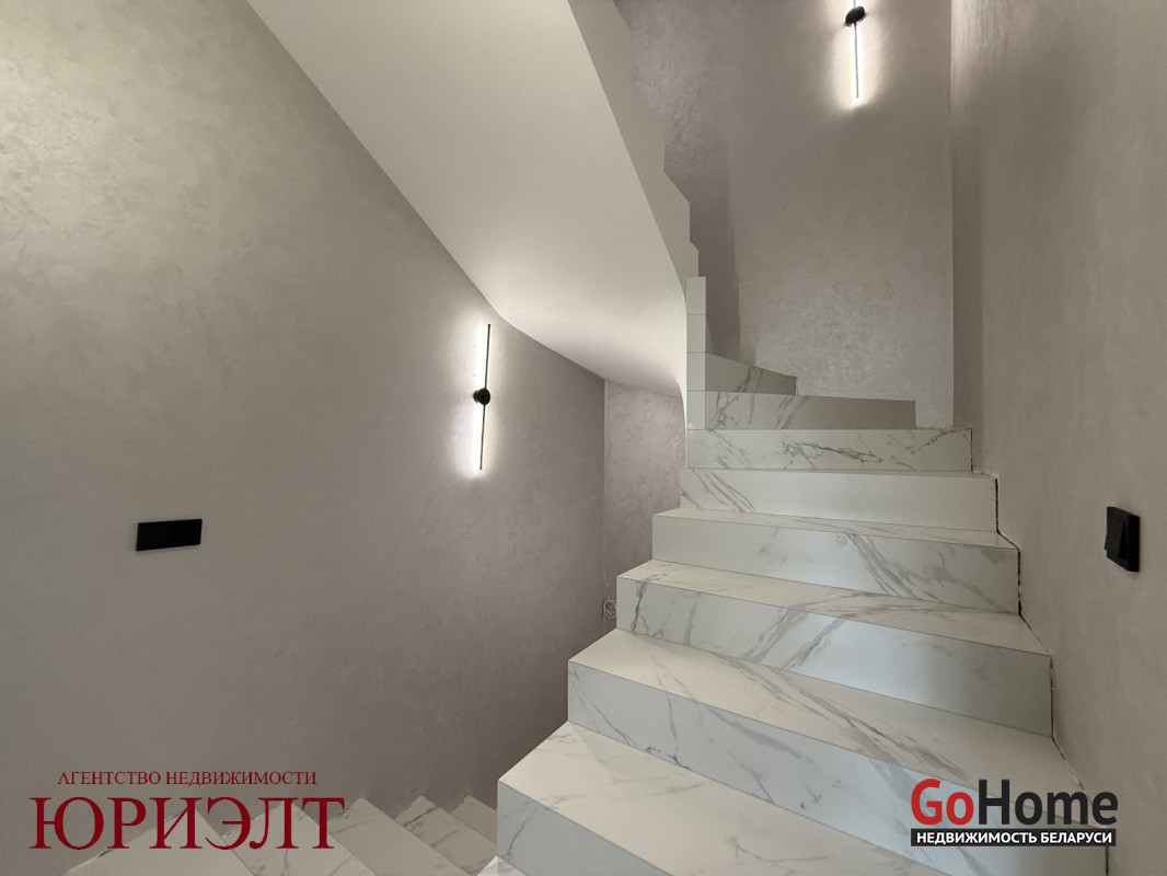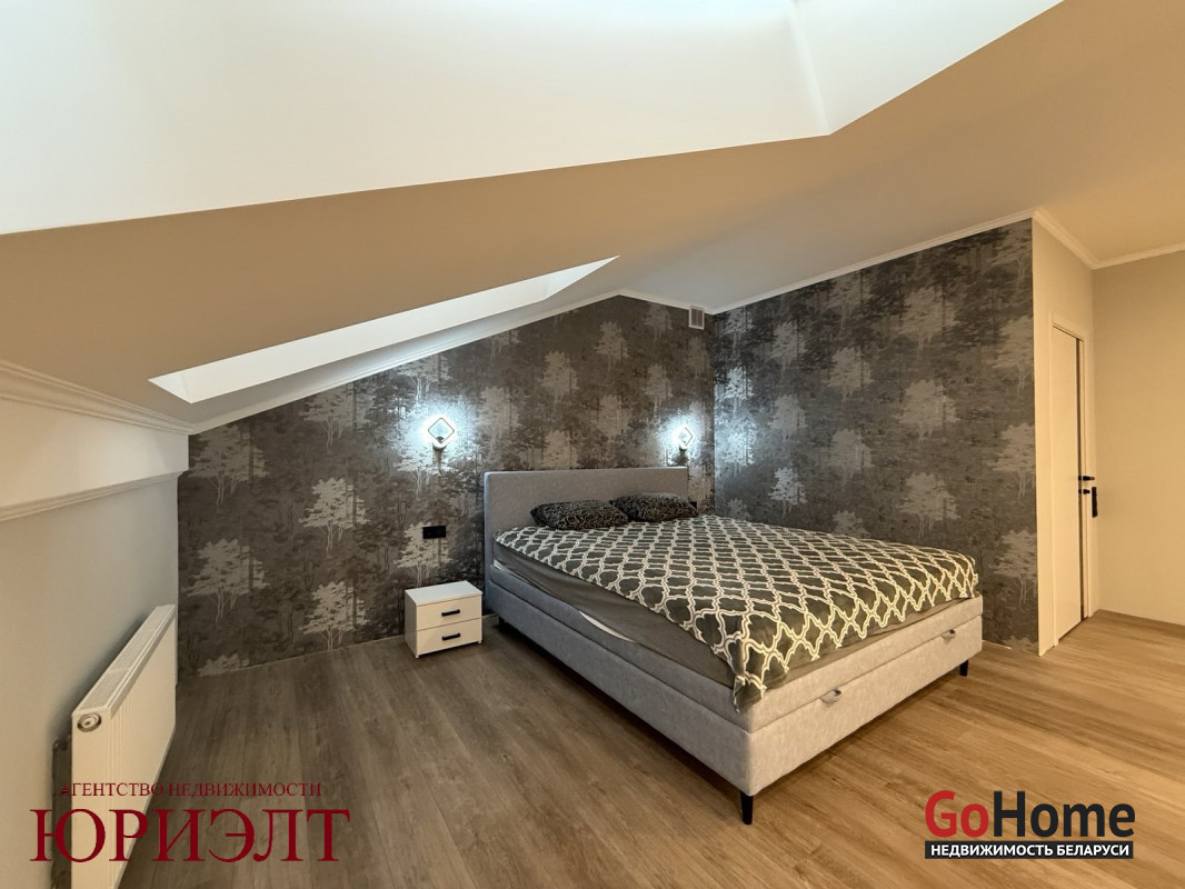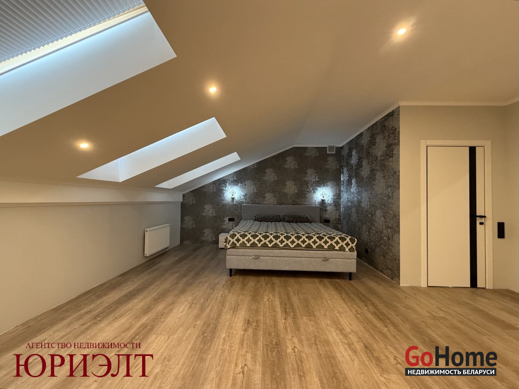 Стены первого этажа и на лестнице отделаны декоративной штукатуркой, в спальнях оклеены обоями. Потолок-натяжной с ленточным и точечным освещением. Мансарда, площадь которой 38.8 кв.м., переоборудована в жилое помещение с просторной гардеробной. Площадь подвального помещения 32 кв.м., оборудовано под жилое, обустроено мебелью, изготовленной по индивидуальному проекту: мини-кухня с барным столом и стульями, зона отдыха с большим угловым диваном и проектором, офисная зона, гардеробная, санузел. Установлена принудительная система вентиляции, канализационный насос.