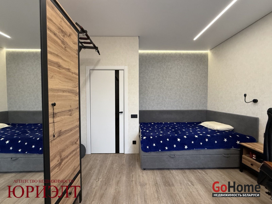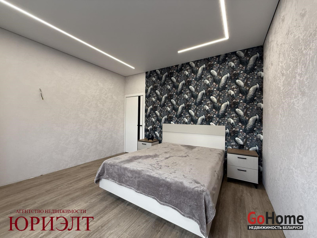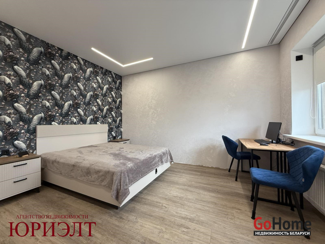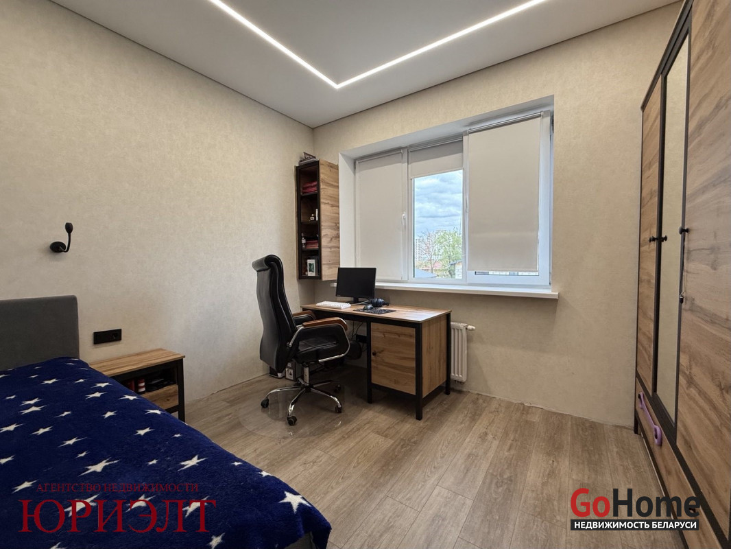 Стены первого этажа и на лестнице отделаны декоративной штукатуркой, в спальнях оклеены обоями. Потолок-натяжной с ленточным и точечным освещением. Мансарда, площадь которой 38.8 кв.м., переоборудована в жилое помещение с просторной гардеробной. Площадь подвального помещения 32 кв.м., оборудовано под жилое, обустроено мебелью, изготовленной по индивидуальному проекту: мини-кухня с барным столом и стульями, зона отдыха с большим угловым диваном и проектором, офисная зона, гардеробная, санузел. Установлена принудительная система вентиляции, канализационный насос.