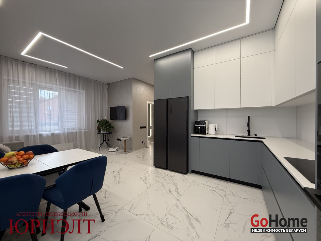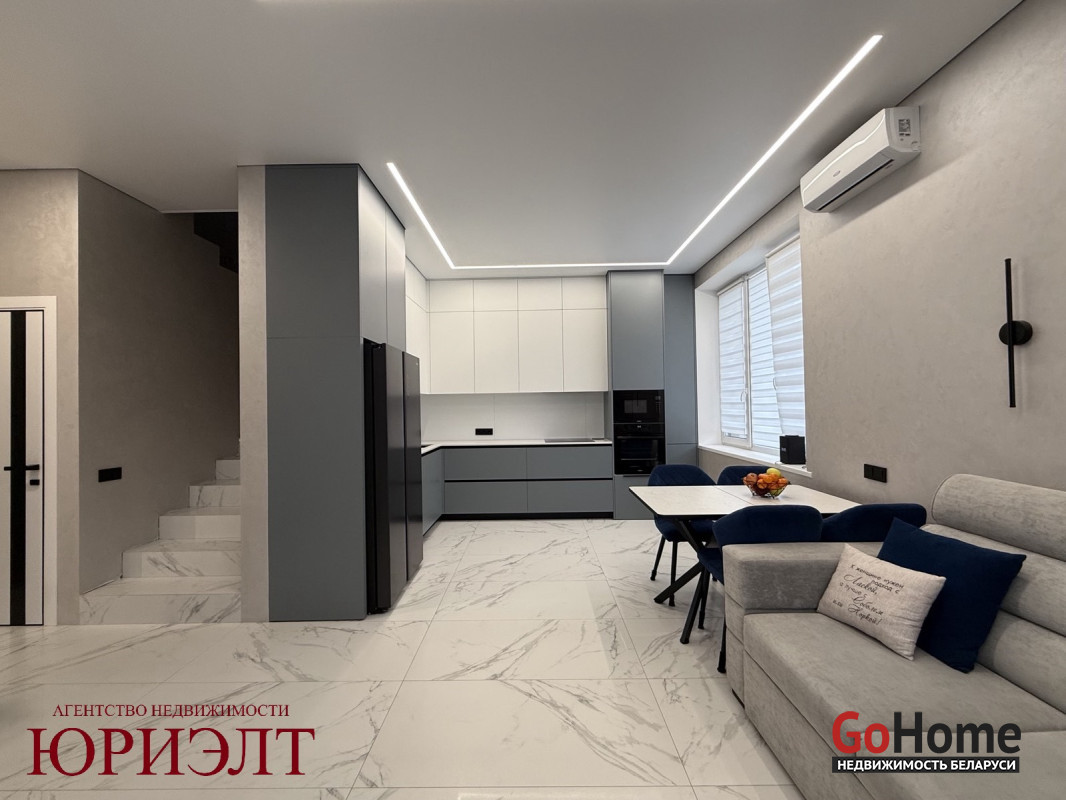 В продаже великолепный таунхаус в жилом комплексе «Бастион» 2023 года постройки на улице Колесника. Этот стильный и современный дом с общей площадью 165.6 кв.м. и жилой площадью 101.2 кв.м. предлагает идеальное сочетание комфорта и функциональности. Два полных жилых этажа. Общая площадь первого этажа 36.25 кв.м., состоит из кухни-гостиной, прихожей и санузла. Кухня -гостиная оборудована современной встроенной мебелью со встроенной бытовой техникой: микроволновая печь и духовой шкаф Haier, посудомоечная машина Vard, измельчитель, вытяжка. Прихожая также оборудована современной мебелью по индивидуальному проекту.