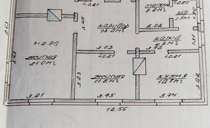 3-комнатная, 83/33.6/9.9 м2, (20 соток), 1 эт., 1963 г.