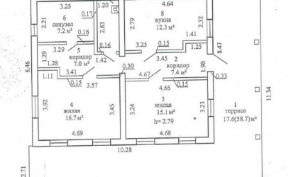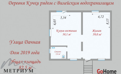 Добротный деревянный дом с шиферной крышей, общая площадь 57.5м2, жилая 37.7м2, кухня 7.4м2.