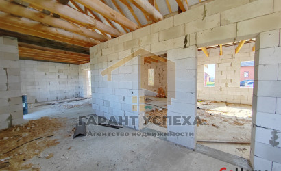 Коробка жилого дома в Жабинковском р-не. 2021 г.п. 1 этаж, мансарда. Общ.СНБ - 77,5 кв.м, общ.- 77,5 кв.м, жил.- 30,9 кв.м, кух.- 24,2 кв.м. 2 комнаты, высота потолка - 2,7 м. Стены: материал - газосиликатный блок; утеп…