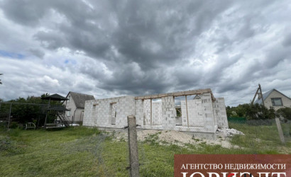 Коробка дачного дома жилого типа в Брестском р-не. Стены: материал - газосиликатный блок. Фундамент: ленточный монолитный; материал - бетон; подушка - бетонная. Коммуникации: газ - централизованный (по улице, взносы…