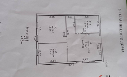 3-комнатная, 64.9/48.8/7.9 м2, (25 соток), 1 эт., 2000 г.