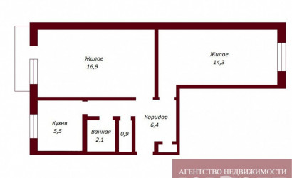3-комнатная, 69.5/40.6/8.9 м2, Этаж 9 из 9, 1975 г.