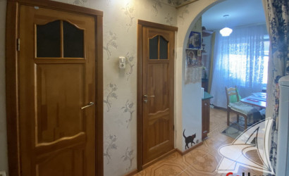 3-комнатная квартира, г. Кобрин, ул. Дзержинского, 1984 г.п., 5 / 5 кирпич, 60,7 / 57,2 / 37,2 / 8,0, санузел раздельный, лоджия застеклена, подвал, стеклопакеты, межкомнатные двери - массив, потолки - снежка, натяжной (…