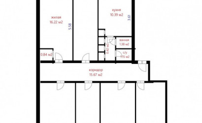 2-комнатная, 40.5/26.79/6.11 м2, Этаж 1 из 5